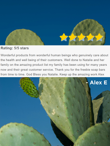 Wonderful products from wonderful human beings who genuinely care about the health and well being of their customers. Well done to Natalie and her family on the amazing product list my family has been using for many years now and their great customer service. Thank you for the freebie soap bars from time to time. God Bless you Natalie. Keep up the amazing work